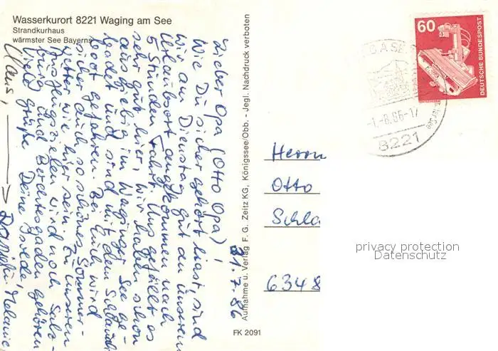 Waging_See Strandkurhaus Waging_See postalisch gelaufen nach 1965 Erhaltung siehe scans [FriedD77] Frierer