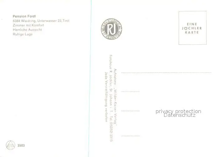 Waidring_Tirol Pension Foidl Waidring Tirol postalisch nicht gelaufen nach 1965 Erhaltung siehe scans [WerneD78] WernPID7