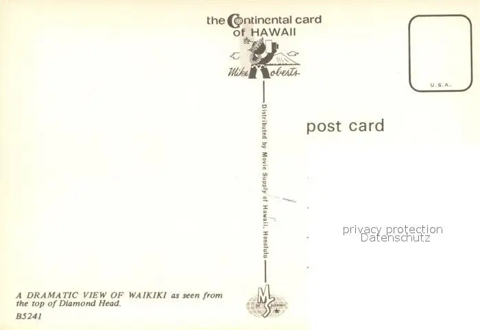 Waikiki From Top of Diamond Head postalisch nicht gelaufen nach 1965 Erhaltung siehe scans [LiesaD40] LiesID40