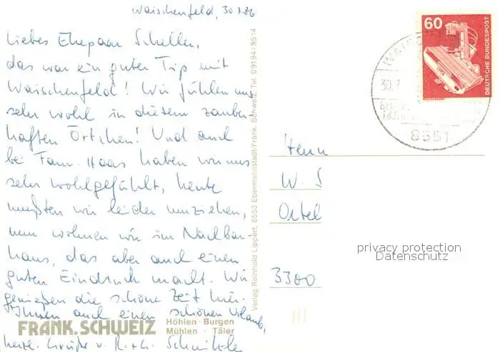 Waischenfeld Ortsansichten Waischenfeld postalisch gelaufen 1986 Erhaltung siehe scans [FriedD77] Frierer