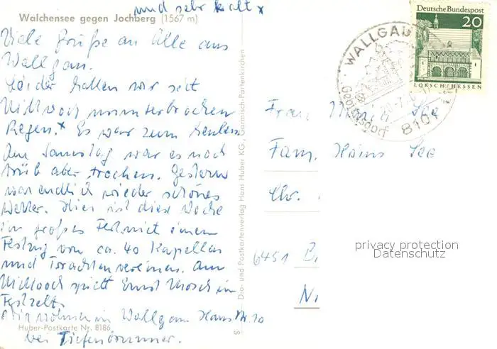 Walchensee Jochberg Walchensee postalisch gelaufen nach 1965 Erhaltung siehe scans [PaolaD17] PaolPID1