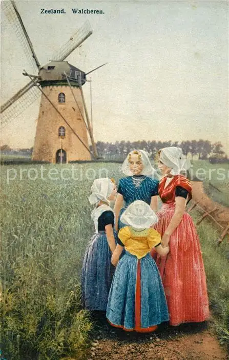 AK / Ansichtskarte Walcheren Junge Maedchen in Trachten Windmuehle Walcheren