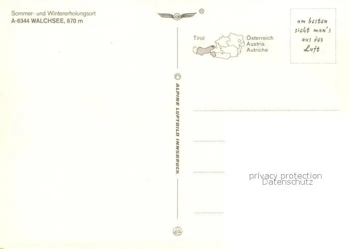Walchsee_Tirol Erholungsort Fliegeraufnahme Walchsee Tirol postalisch nicht gelaufen nach 1965 Erhaltung siehe scans [FriedD77] Frierer