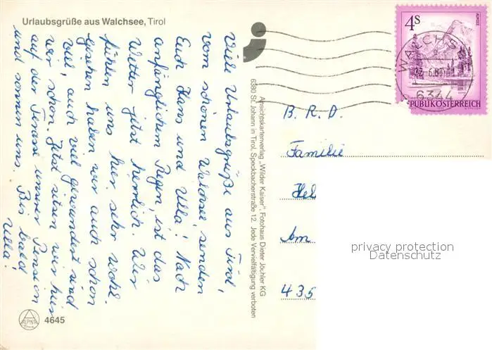 Walchsee_Tirol Gemeindeamt Walchsee Tirol postalisch gelaufen nach 1965 Erhaltung siehe scans [WerneD78] WernPID7