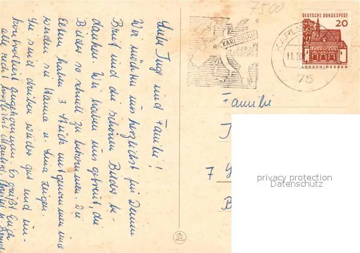 Waldstadt_Karlsruhe Waldstadt_Karlsruhe postalisch gelaufen nach 1965 Erhaltung siehe scans [NatalD47] NataID47