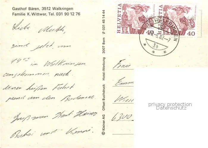Walkringen Gasthof Baeren Kirche Walkringen postalisch gelaufen 1982 Erhaltung siehe scans [FriedD77] Frierer