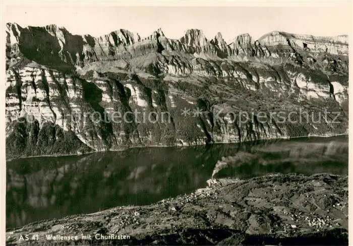 AK / Ansichtskarte Wallensee_Walensee_SG mit Churfirsten Feldpost