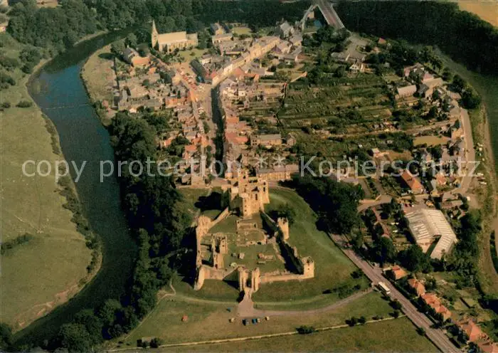 AK / Ansichtskarte Warkworth Castle and village aerial view