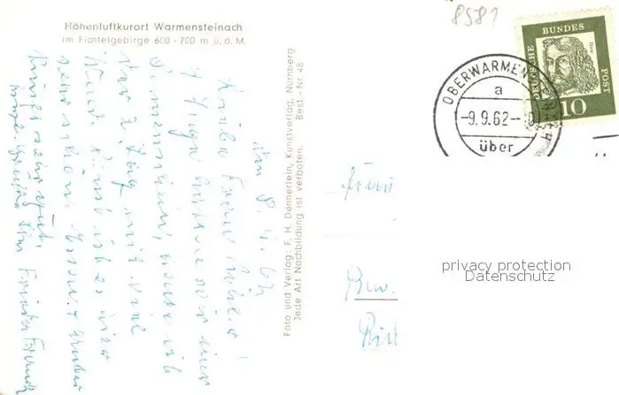 Warmensteinach Panorama Warmensteinach postalisch gelaufen 1962 Erhaltung siehe scans [WerneD78] WernPID7