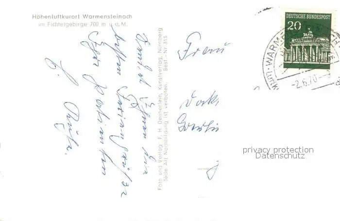 Warmensteinach Panorama Warmensteinach postalisch gelaufen 1970 Erhaltung siehe scans [WerneD78] WernPID7