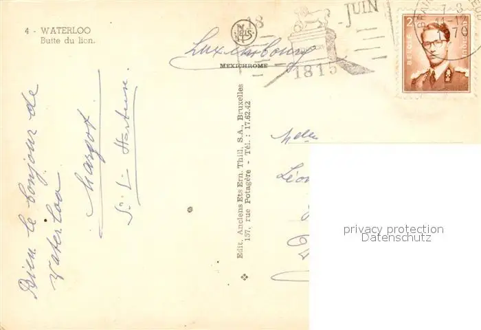 Waterloo Butte du lien Waterloo postalisch gelaufen 1970 Erhaltung siehe scans [WerneD78] WernPID7