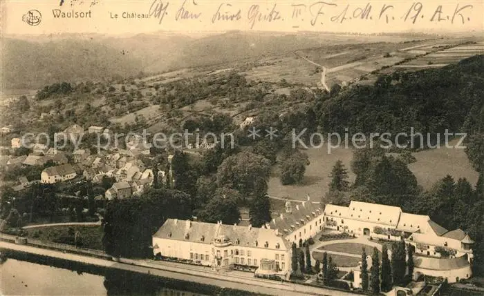 Waulsort Chateau Schloss Fliegeraufnahme Waulsort postalisch gelaufen 1915 Feldpostamt (Stempel) Erhaltung siehe scans [FriedD77] Feldpostamt (Stempel) Frierer