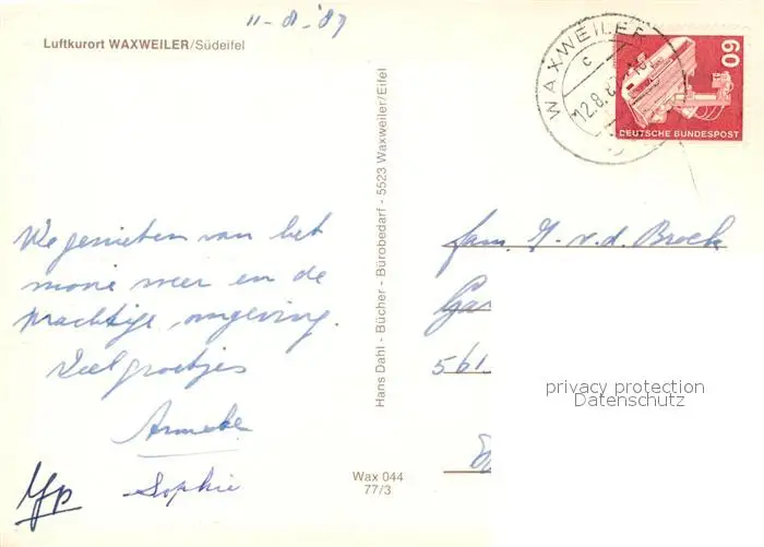 Waxweiler Ortsansicht Waxweiler postalisch gelaufen 1987 Erhaltung siehe scans [WerneD78] WernPID7