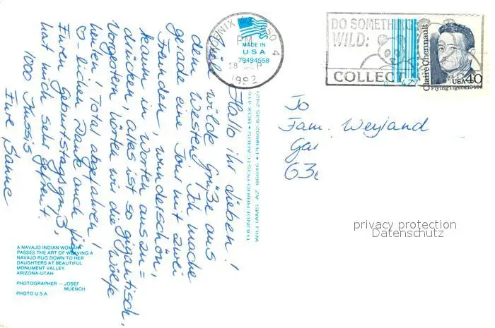 Weberei Navajo Indian Woman Weaving Monument Valley Arizona Utah Weberei postalisch gelaufen 1992 Erhaltung siehe scans [PaolaD17] PaolPID1