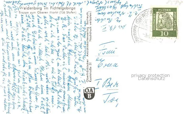 Weidenberg Treppen zum Oberen Markt Weidenberg postalisch gelaufen 1962 Erhaltung siehe scans [WerneD78] WernPID7