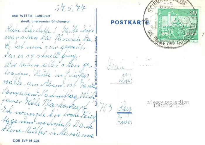 Weifa Ortsansicht Weifa postalisch gelaufen 1977 Erhaltung siehe scans [WerneD78] WernPID7