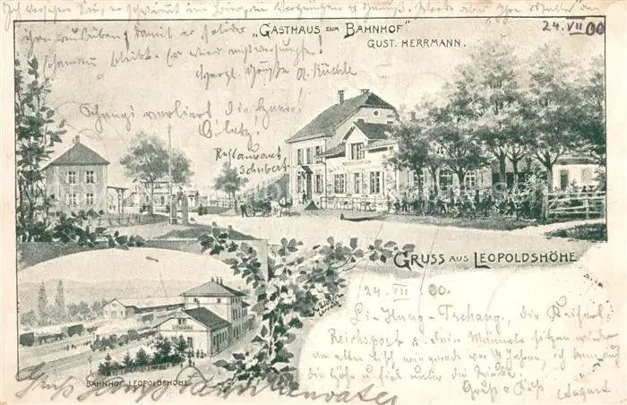 Weil_am_Rhein Kategorie Alte Ansichtskarten Postkarten bx56386 Weil_am_Rhein Leopoldshoehe Gasthaus Bahnhof Weil_am_Rhein postalisch gelaufen 1900 Erhaltung siehe scans [NatalD47]