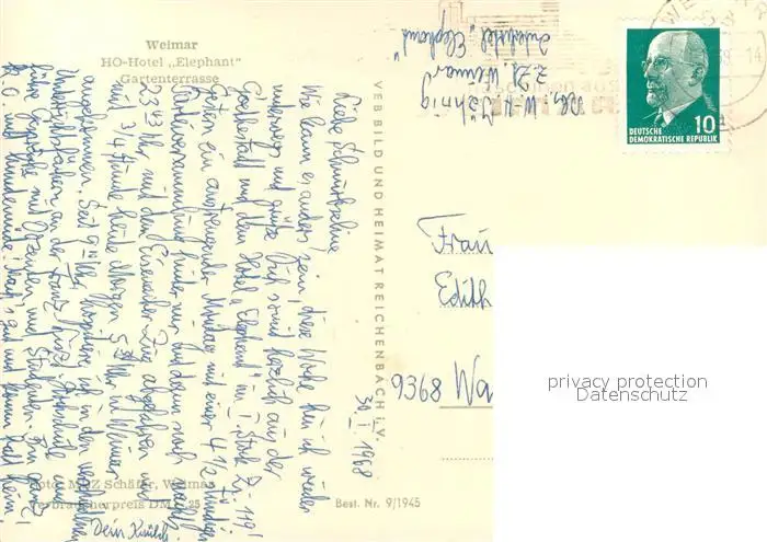 Weimar__Thueringen HO Hotel Elephant Gartenstrasse postalisch gelaufen 1968 Erhaltung siehe scans [WerneD78] WernPID7
