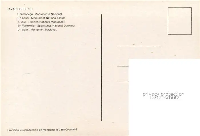 Wein Cavas Codorniu Weinkeller Bodega Wein postalisch nicht gelaufen nach 1965 Erhaltung siehe scans [PaolaD17] PaolPID1