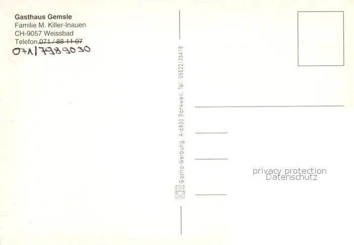 Weissbad Gasthaus Gemsle Weissbad postalisch nicht gelaufen nach 1965 Erhaltung siehe scans [LiesaD40] LiesID40