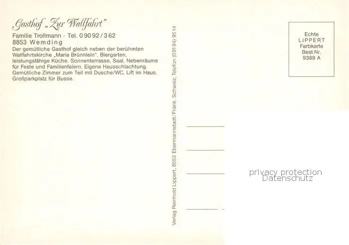 Wemding Gasthof Pension zur Wallfahrt Wemding postalisch nicht gelaufen nach 1965 Erhaltung siehe scans [FriedD77] Frierer
