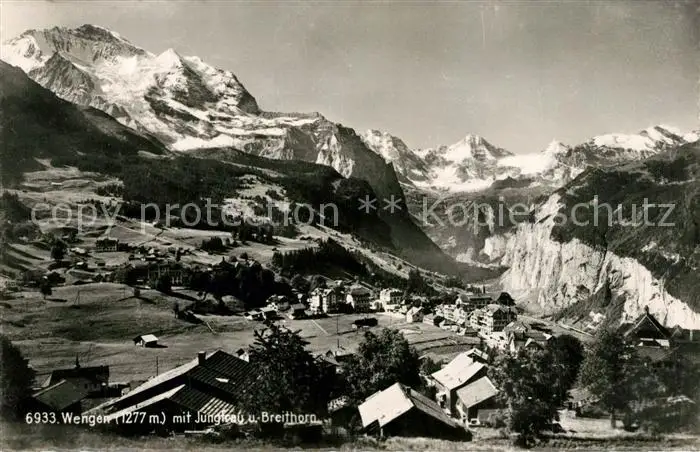 AK / Ansichtskarte Wengen_BE mit Jungfrau und Breithorn Wengen_BE