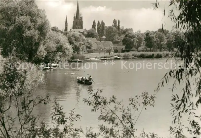 Werder_Havel Partie an der Havel Blick zur Kirche Werder Havel postalisch nicht gelaufen 1984 Erhaltung siehe scans [FriedD77] Frierer