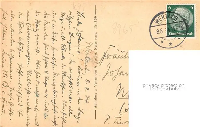 Wertach Gaishorn Panorama Wertach postalisch gelaufen 1934 Erhaltung siehe scans [KathaD81] Kathoren
