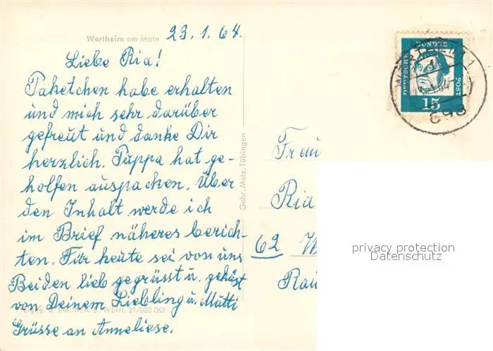 Wertheim_Main Fliegeraufnahme Wertheim Main postalisch gelaufen 1964 Erhaltung siehe scans [KathaD81] Kathoren