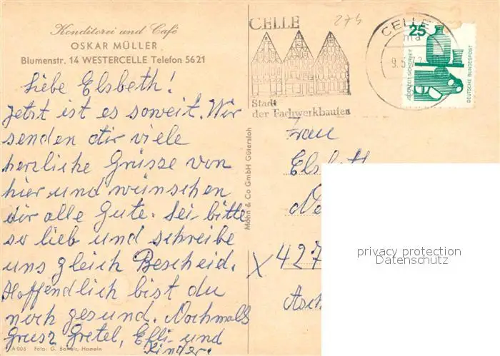 Westercelle Gartenterrasse Cafe Oskar Mueller Westercelle postalisch gelaufen 1972 Erhaltung siehe scans [WerneD78] WernPID7