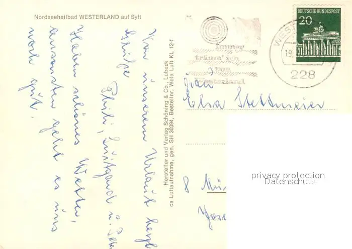 Westerland_Sylt Kategorie Alte Ansichtskarten Postkarten bx62801 Westerland_Sylt Fliegeraufnahme Westerland_Sylt postalisch gelaufen Erhaltung siehe scans [KathaD81]