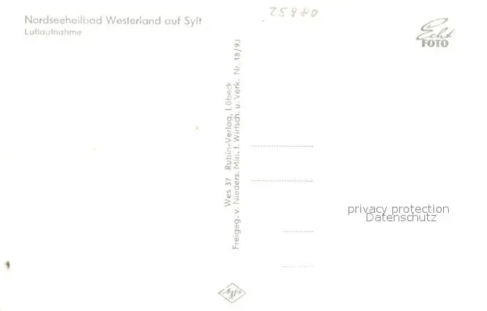 Westerland_Sylt Kategorie Alte Ansichtskarten Postkarten bx93580 Westerland_Sylt Fliegeraufnahme Westerland_Sylt postalisch nicht gelaufen nach 1965 Erhaltung siehe scans [WerneD78]