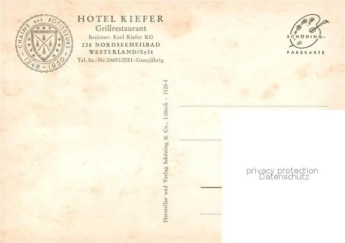 Westerland_Sylt Hotel Kiefer Westerland_Sylt postalisch nicht gelaufen nach 1965 Erhaltung siehe scans [PaolaD17] PaolPID1