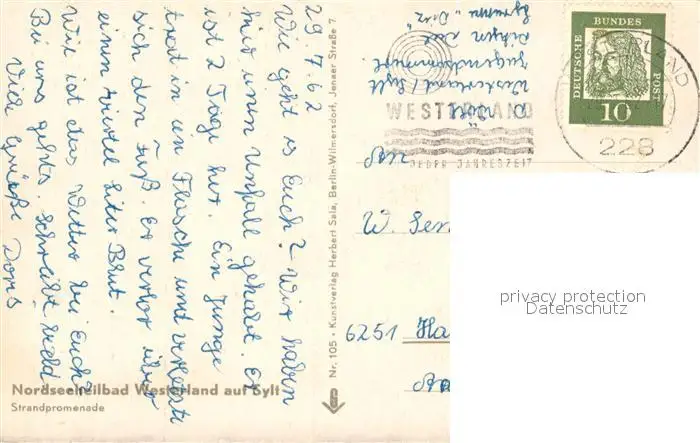 Westerland_Sylt Strandpromenade Westerland_Sylt postalisch gelaufen 1962 Erhaltung siehe scans [KathaD81] Kathoren