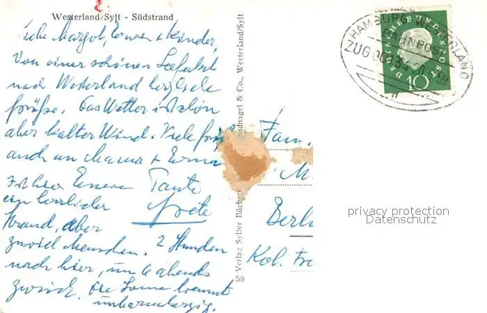 Westerland_Sylt Suedstrand Westerland_Sylt postalisch gelaufen 1934 Bahnpost Erhaltung siehe scans [WerneD78] Bahnpost WernPID7