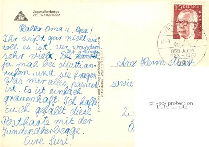 Westerstede Jugendherberge Westerstede postalisch gelaufen 1973 Erhaltung siehe scans [LiesaD40] LiesID40