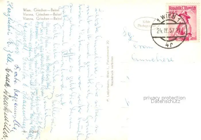 Wien Griechen-Beisel Wien postalisch gelaufen 1957 Erhaltung siehe scans [NatalD47] NataID47