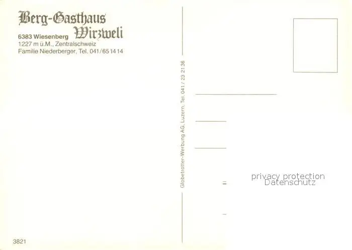 Wiesenberg Berggasthaus Wirzweli Wiesenberg postalisch nicht gelaufen nach 1965 Erhaltung siehe scans [KathaD81] Kathoren