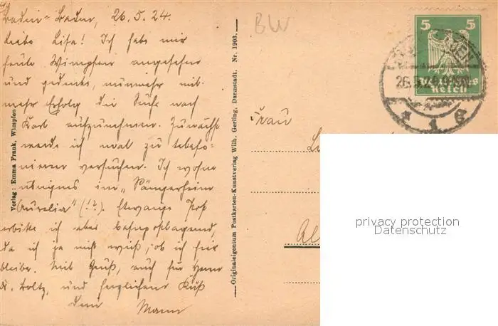 Wimpfen Adlerbrunnen Wimpfen postalisch gelaufen 1924 Erhaltung siehe scans [KathaD81] Kathoren