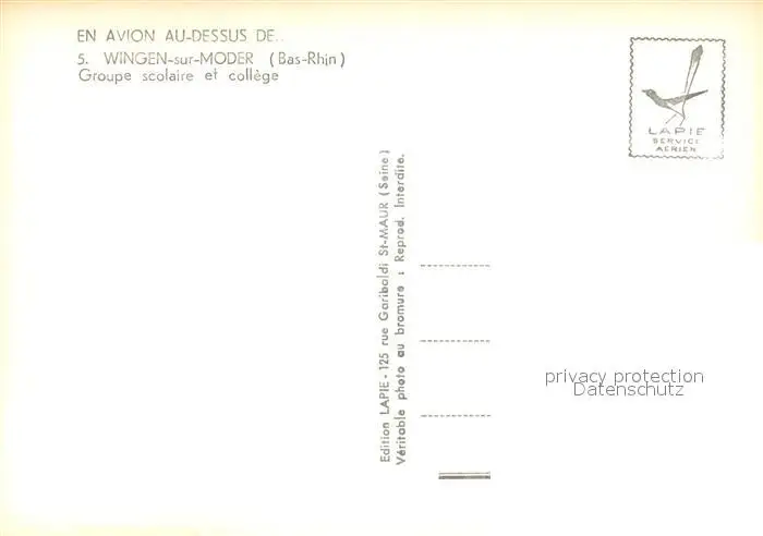 Wingen-sur-Moder Groupe scolaire et collège vue aérienne Wingen-sur-Moder postalisch nicht gelaufen 1921-1965 Erhaltung siehe scans [FriedD77] Frierer