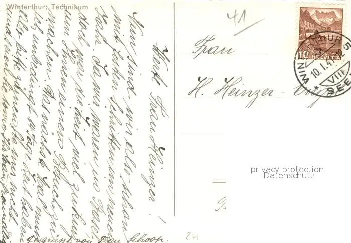 Winterthur__ZH Technikum postalisch gelaufen 1941 Erhaltung siehe scans [WerneD78] WernPID7