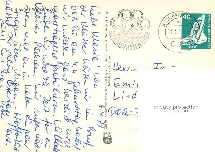 Weitere Ansichtskarten zur Postleitzahl 95339