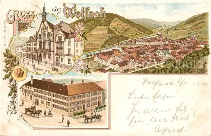 Wolfach Kategorie Alte Ansichtskarten Postkarten bx56354 Wolfach Rathaus Wolfach postalisch gelaufen 1900 Erhaltung siehe scans [NatalD47]