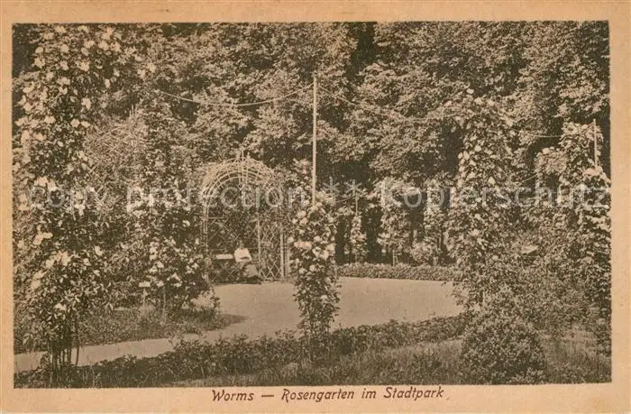 Worms_Rhein Rosengarten im Stadtpark Worms Rhein postalisch nicht gelaufen bis 1920 Erhaltung siehe scans [LiesaD40] LiesID40