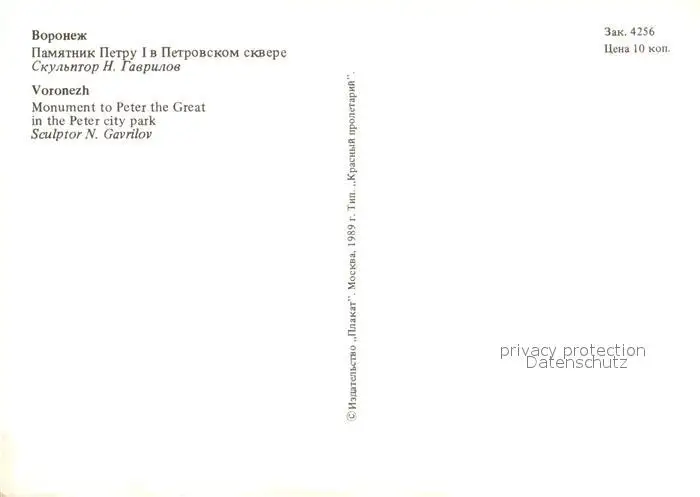 Woronesch Peter I Denkmal Woronesch postalisch nicht gelaufen nach 1965 Erhaltung siehe scans [NatalD47] NataID47