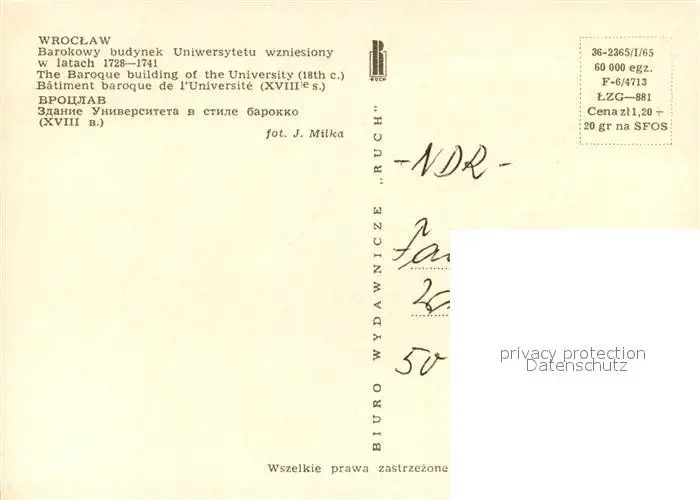 Wroclaw University Wroclaw postalisch nicht gelaufen 1921-1965 Erhaltung siehe scans [NatalD47] NataID47