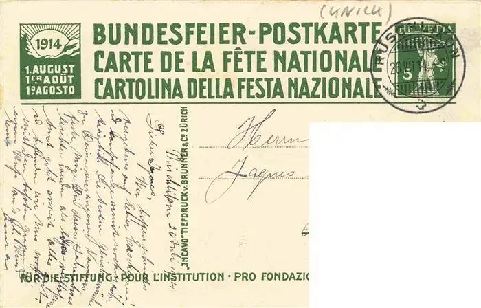 YVERDON-LES-BAINS_VD Pestalozzi in Yverdon Idee zu einem Transparent postalisch gelaufen 1914 Erhaltung siehe scans [WerneD78] WernPID7