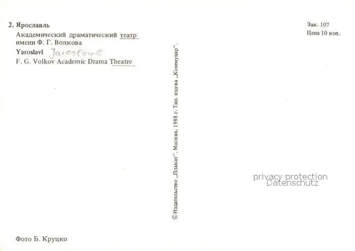 Yaroslaf Theater Yaroslaf postalisch nicht gelaufen 1988 Erhaltung siehe scans [FriedD77] Frierer