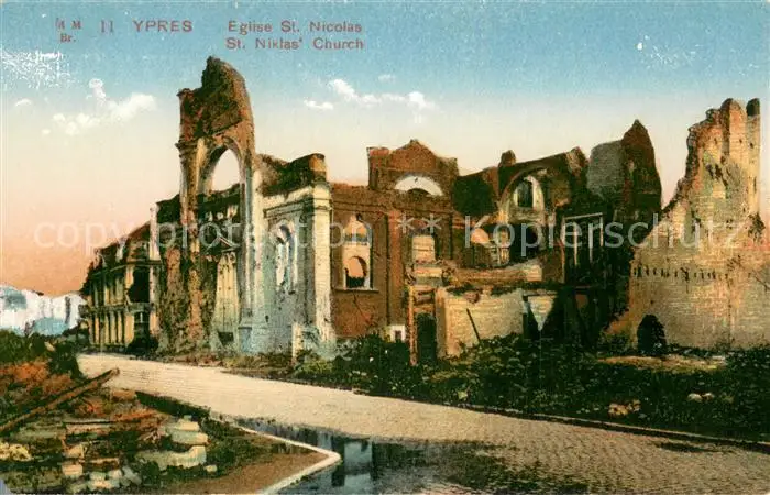 Ypres_Ypern_Ieper Eglise St Nicolas postalisch nicht gelaufen bis 1920 Erhaltung siehe scans [WerneD78] WernPID7