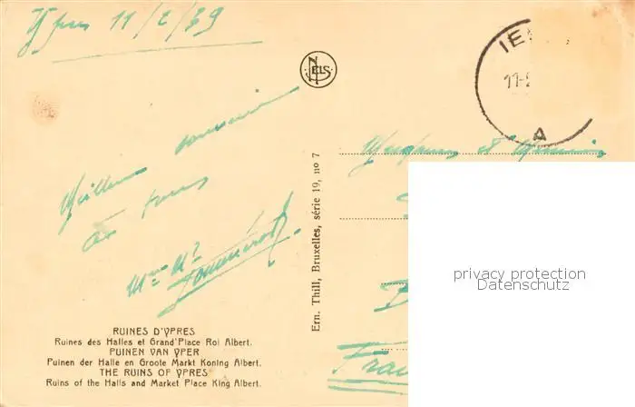 Ypres_Ypern_Ieper Ruinen postalisch gelaufen 1939 Erhaltung siehe scans [LiesaD40] LiesID40